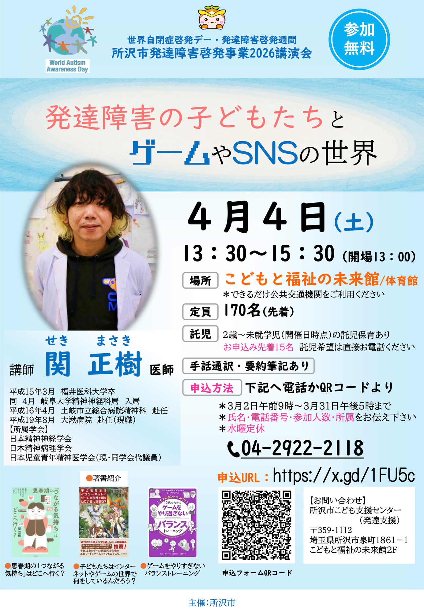 申込先 : 所沢市こども支援センター 発達支援エリア マーガレット